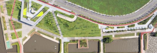 To achieve a finer urban grain BAU introduced two small roads across the site and a lineal park through the centre.